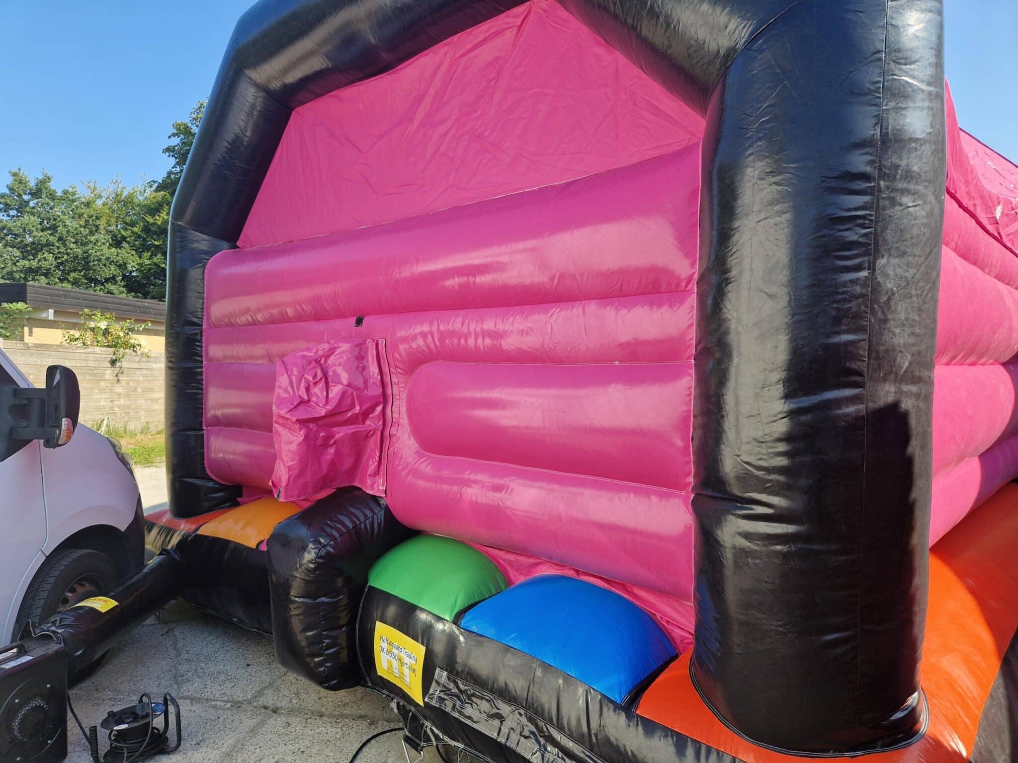 Det tager kun 2-3 minutter. Så er hoppeborgen klar. Blæser skal være tilkoblet hoppeborgen konstant.