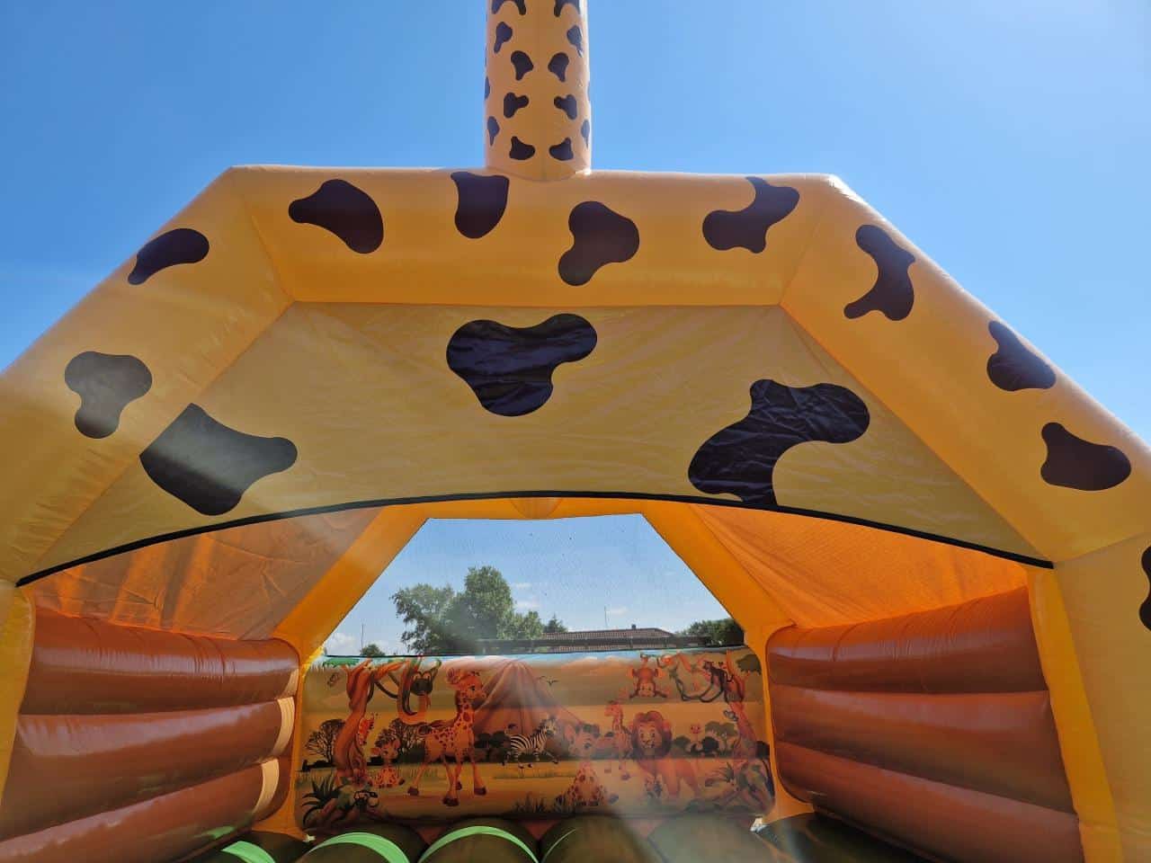 Giraf Hoppeborg 5×6 m med tag – sjovt design og beskyttelse mod sol og let regn.