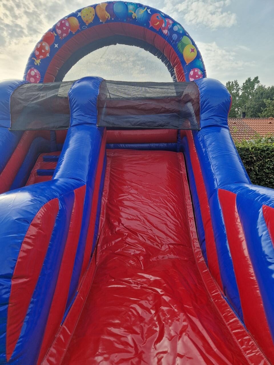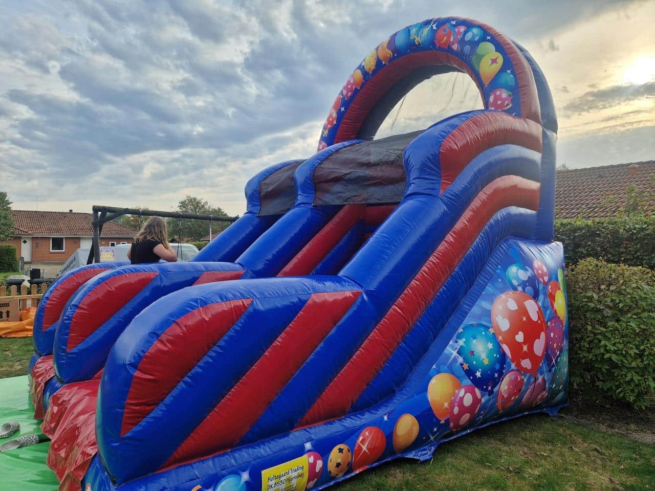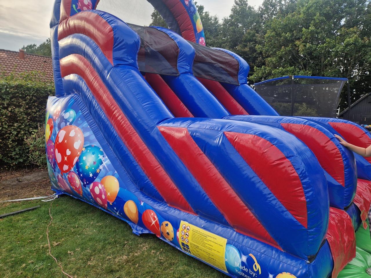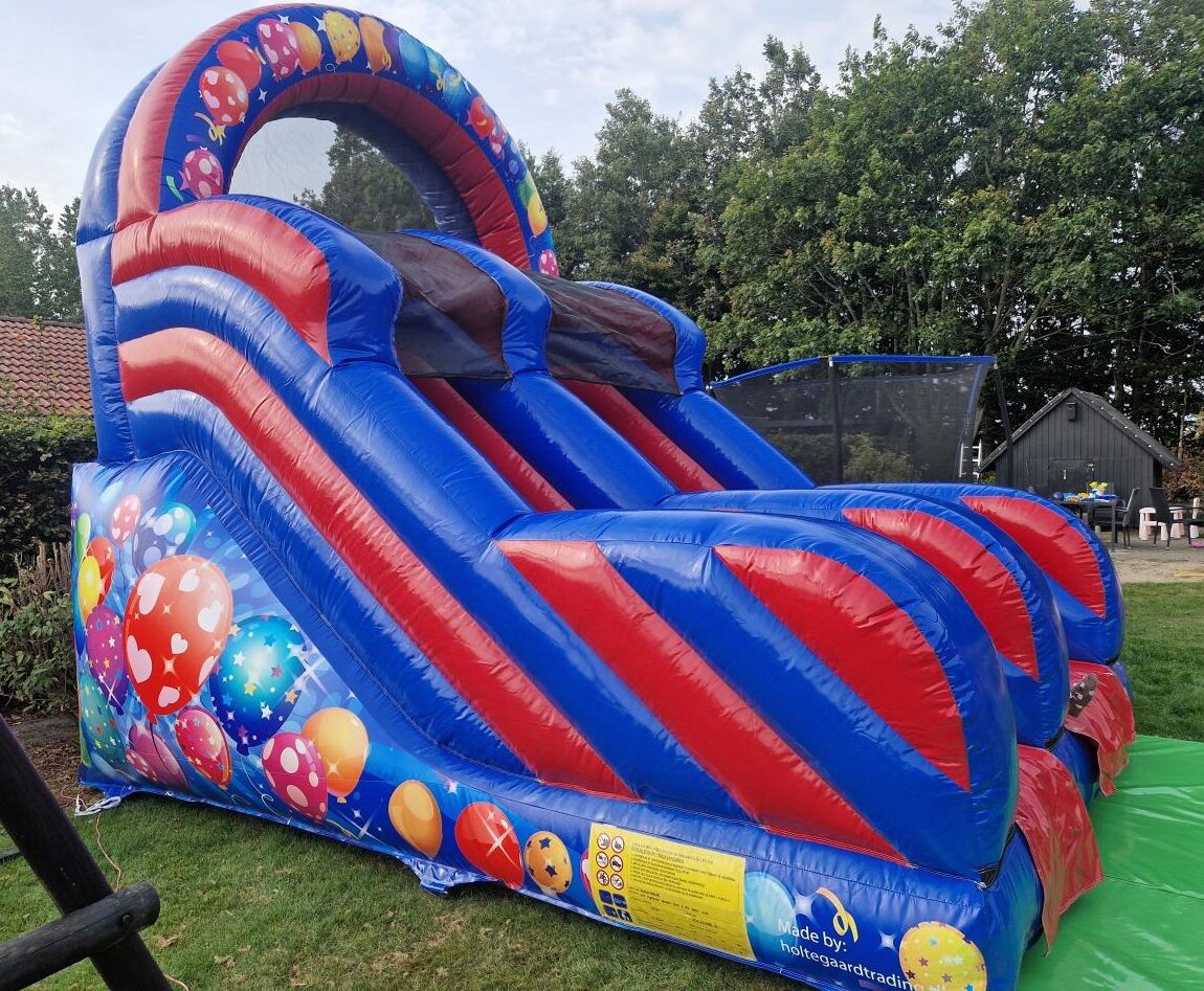 Farverig party-rutsjebane til de mindste – perfekt til haven eller større arrangementer