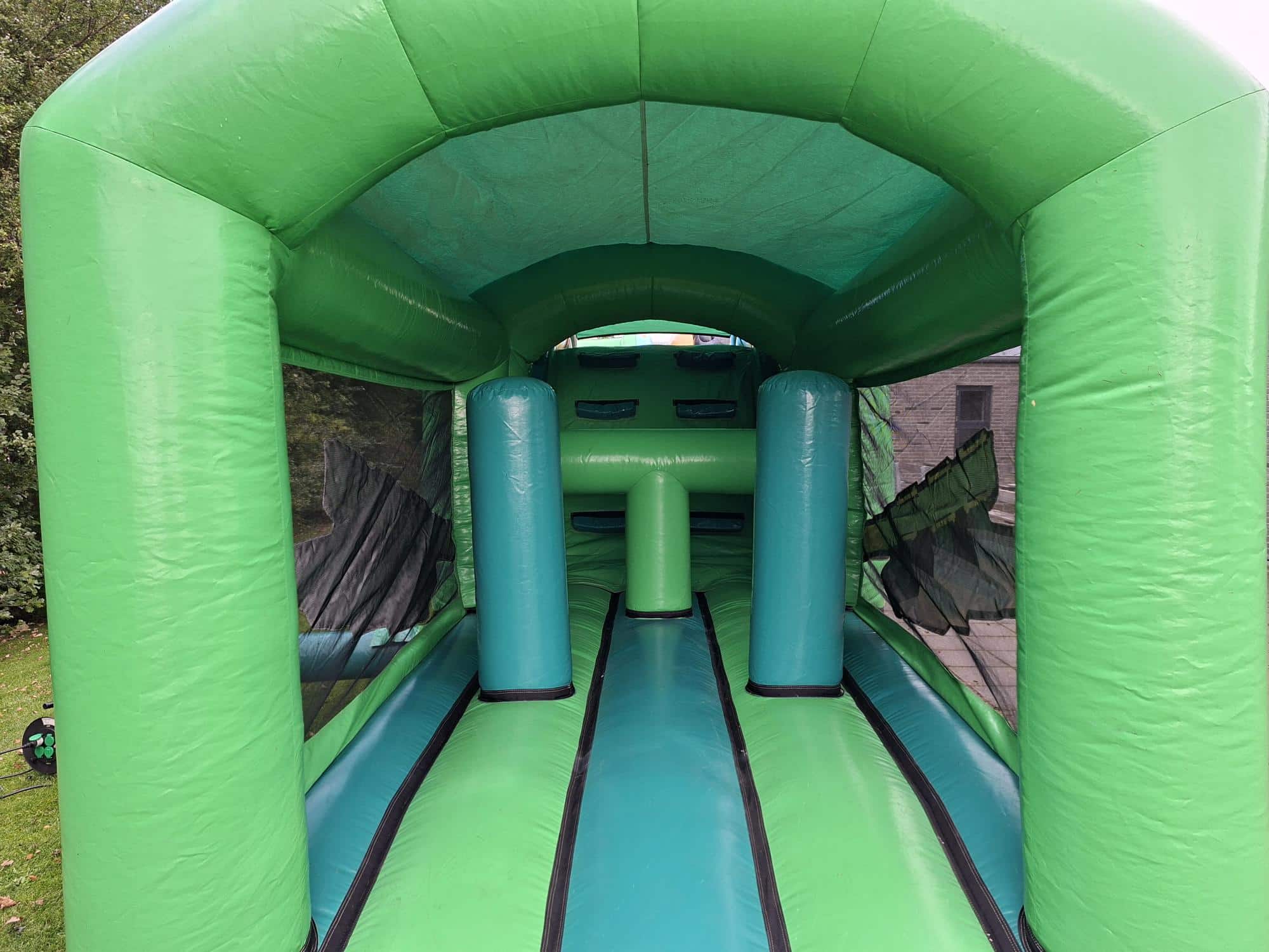 Det tager kun 2-3 minutter. Så er hoppeborgen klar. Blæser skal være tilkoblet hoppeborgen konstant.